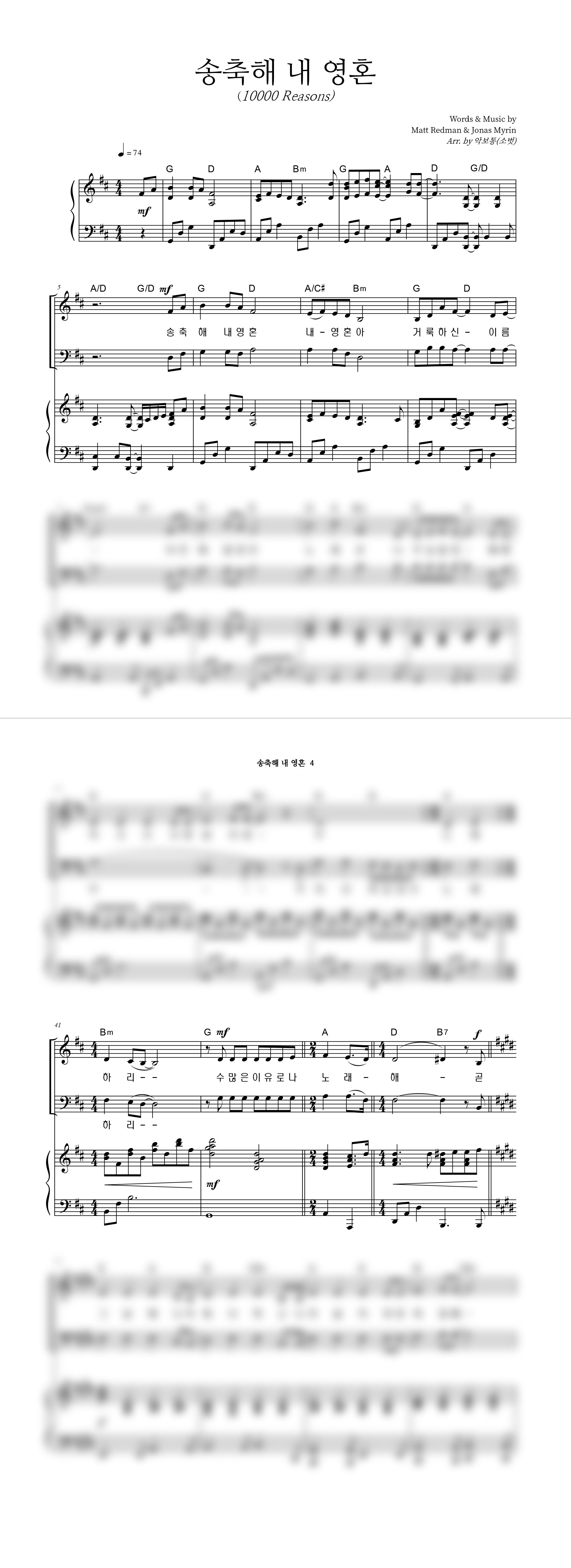 | 성가 4부 + 피아노 반주 |