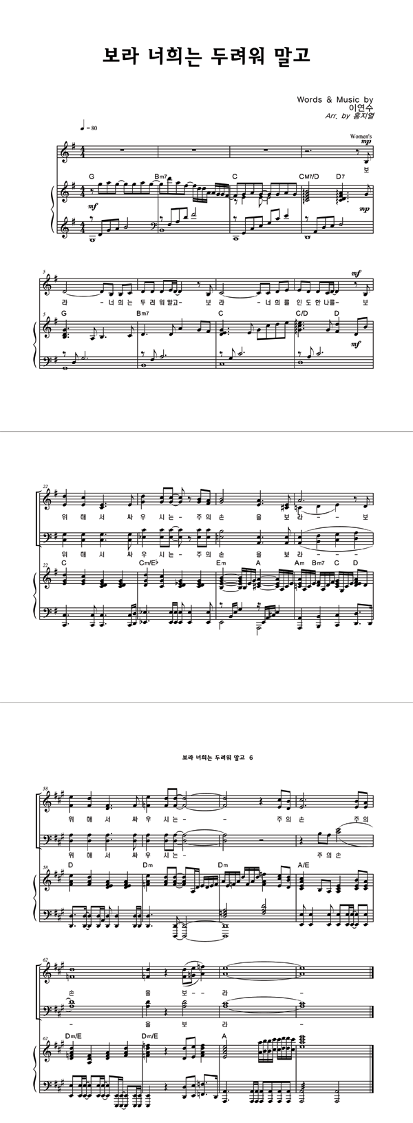 | 주의 이름 높이며 | 성가 3부 + 피아노 반주 |