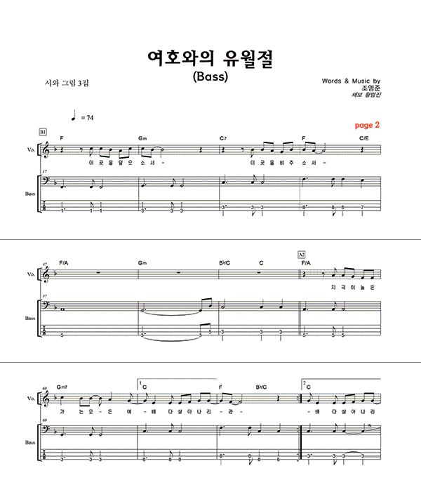 | 물위를 걸어오라 | 성가 2부 + 피아노 반주 |