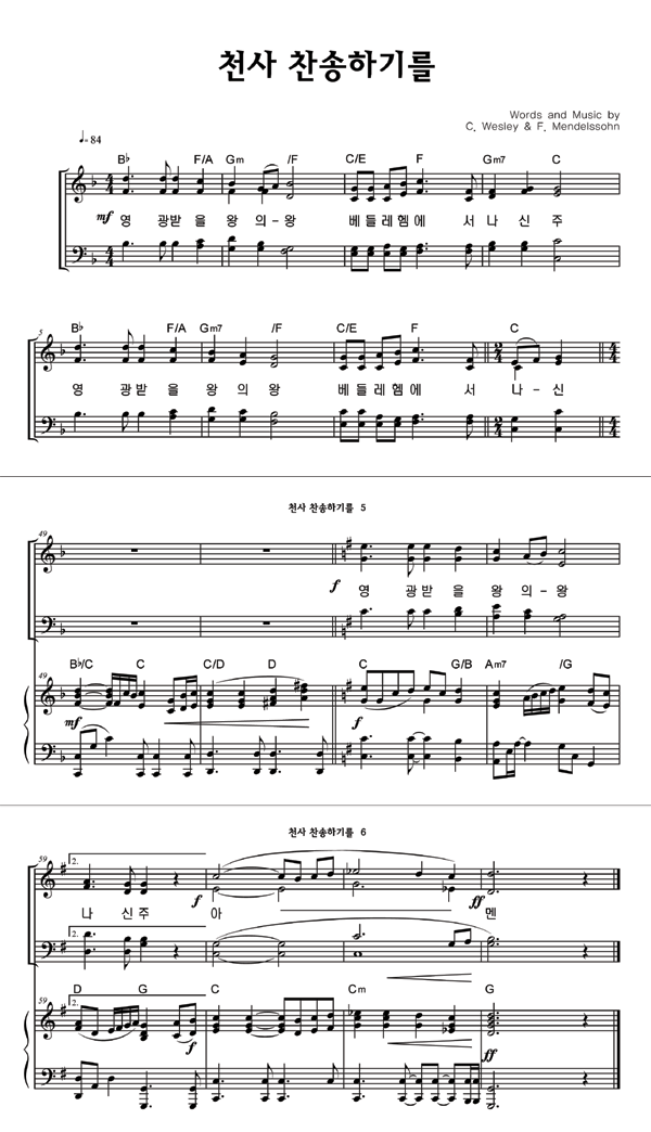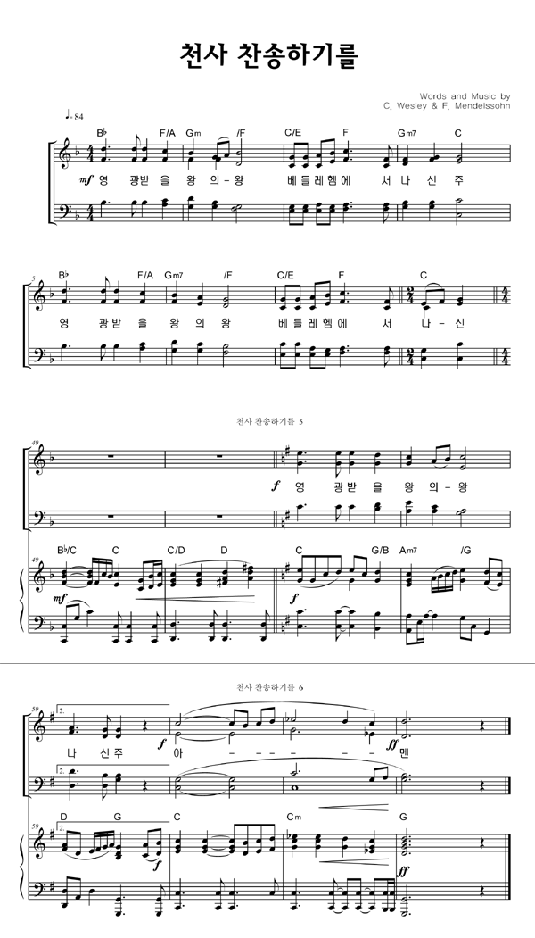 천사 찬송하기를 (찬송가 126장) | 단선 |