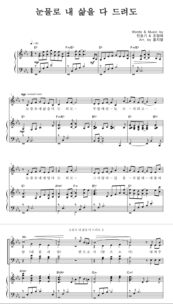 | 눈물로 내 삶을 다 드려도 | 성가 4부 + 피아노 반주 |