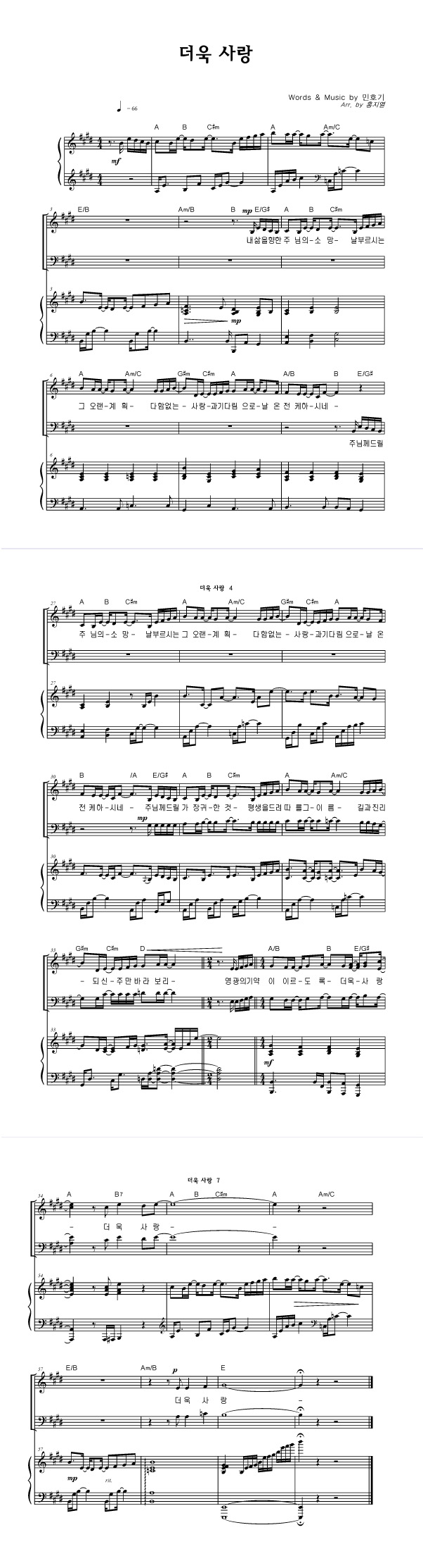 | 더욱 사랑 | 성가 4부 + 피아노 반주 |