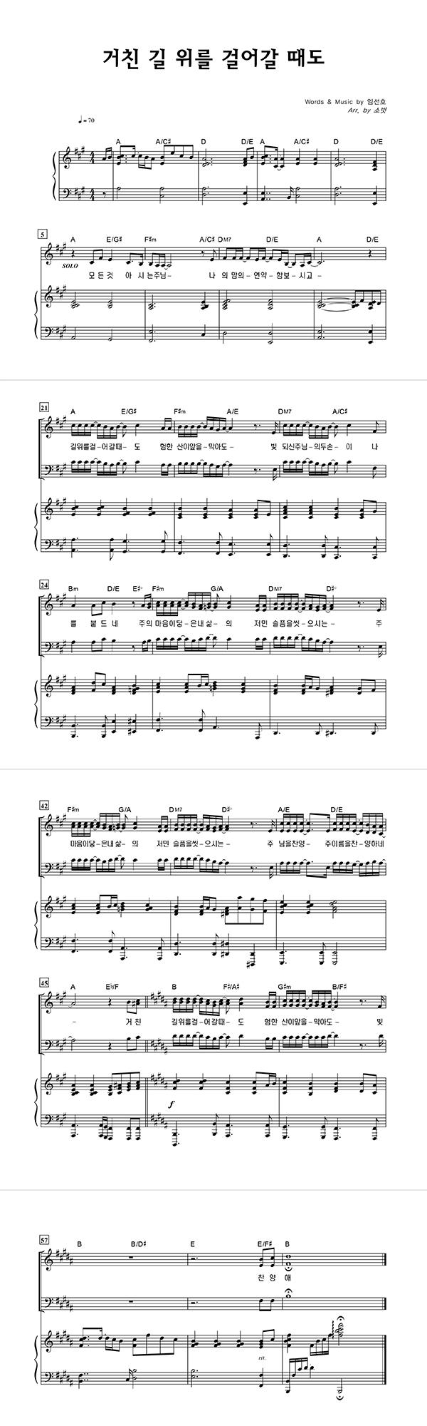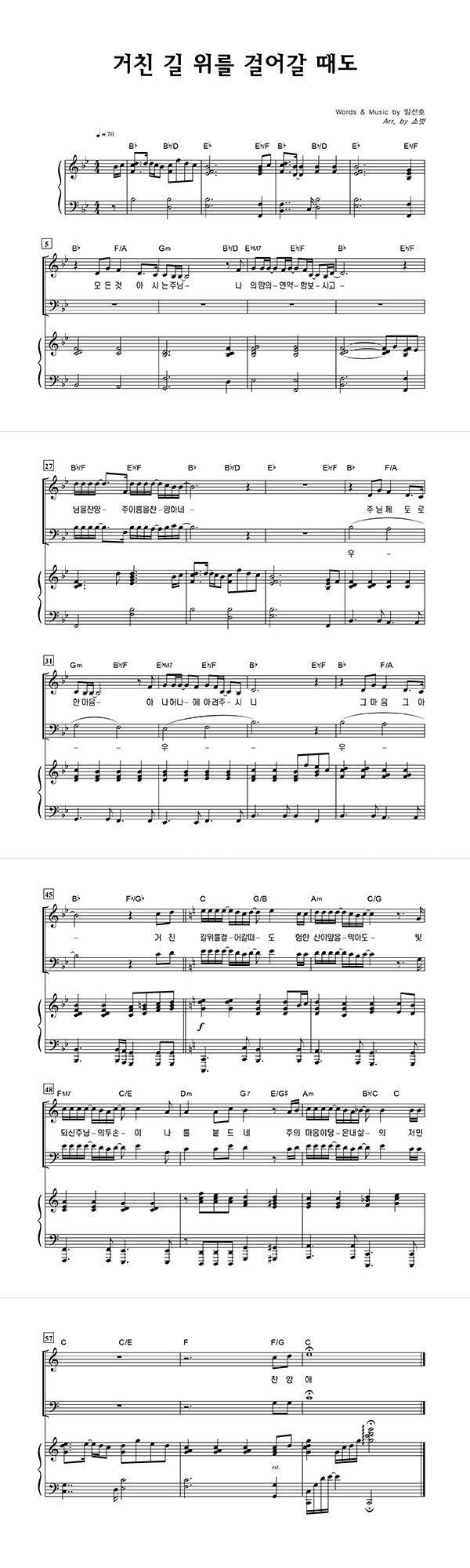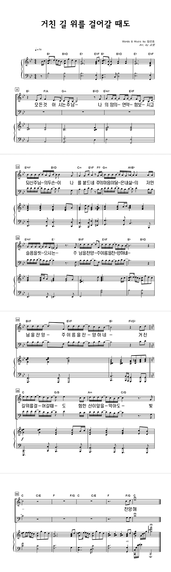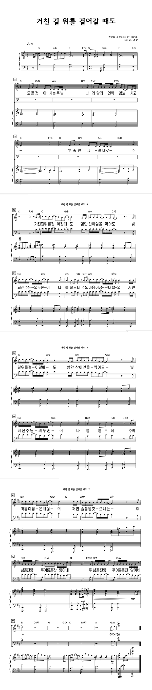 | 거친 길 위를 걸어갈때도 | 성가 4부 + 피아노 반주 |
