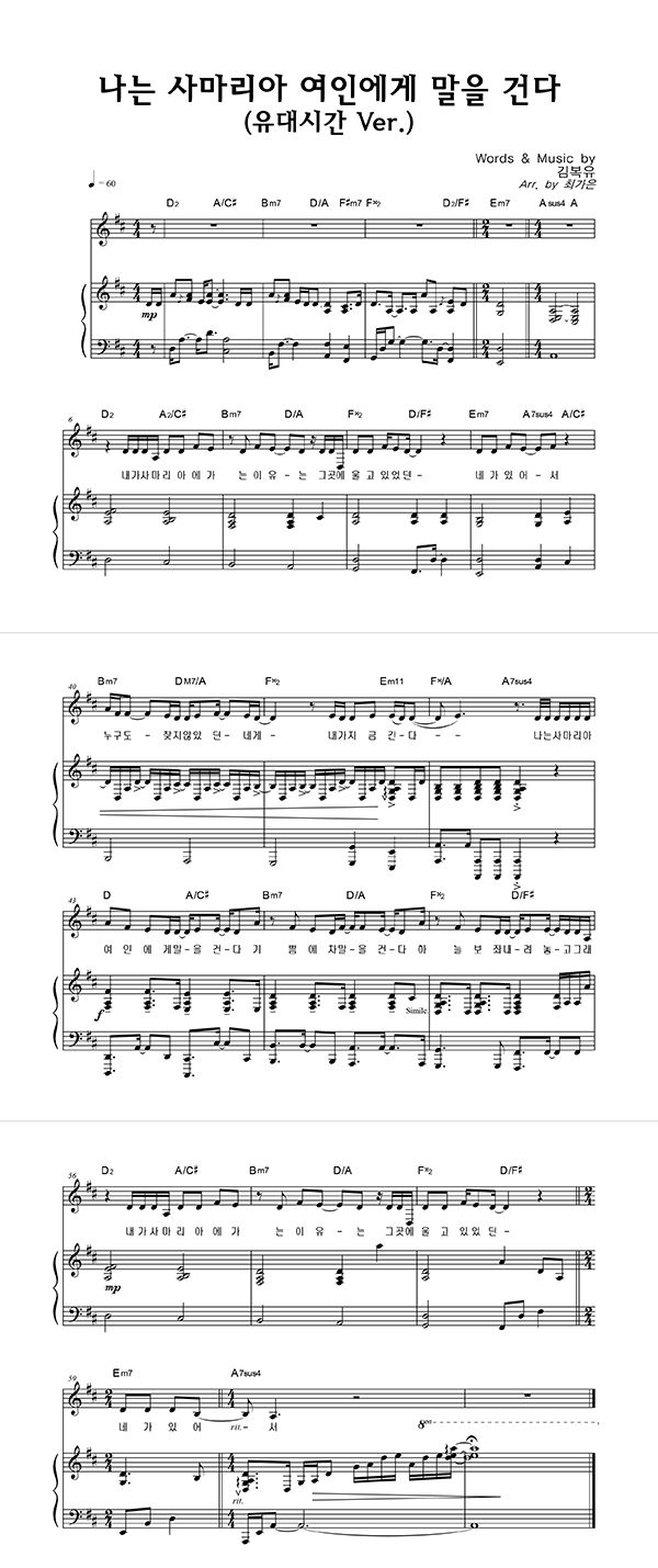 '나는 사마리아 여인에게 말을 건다' 의 다른 악보형식