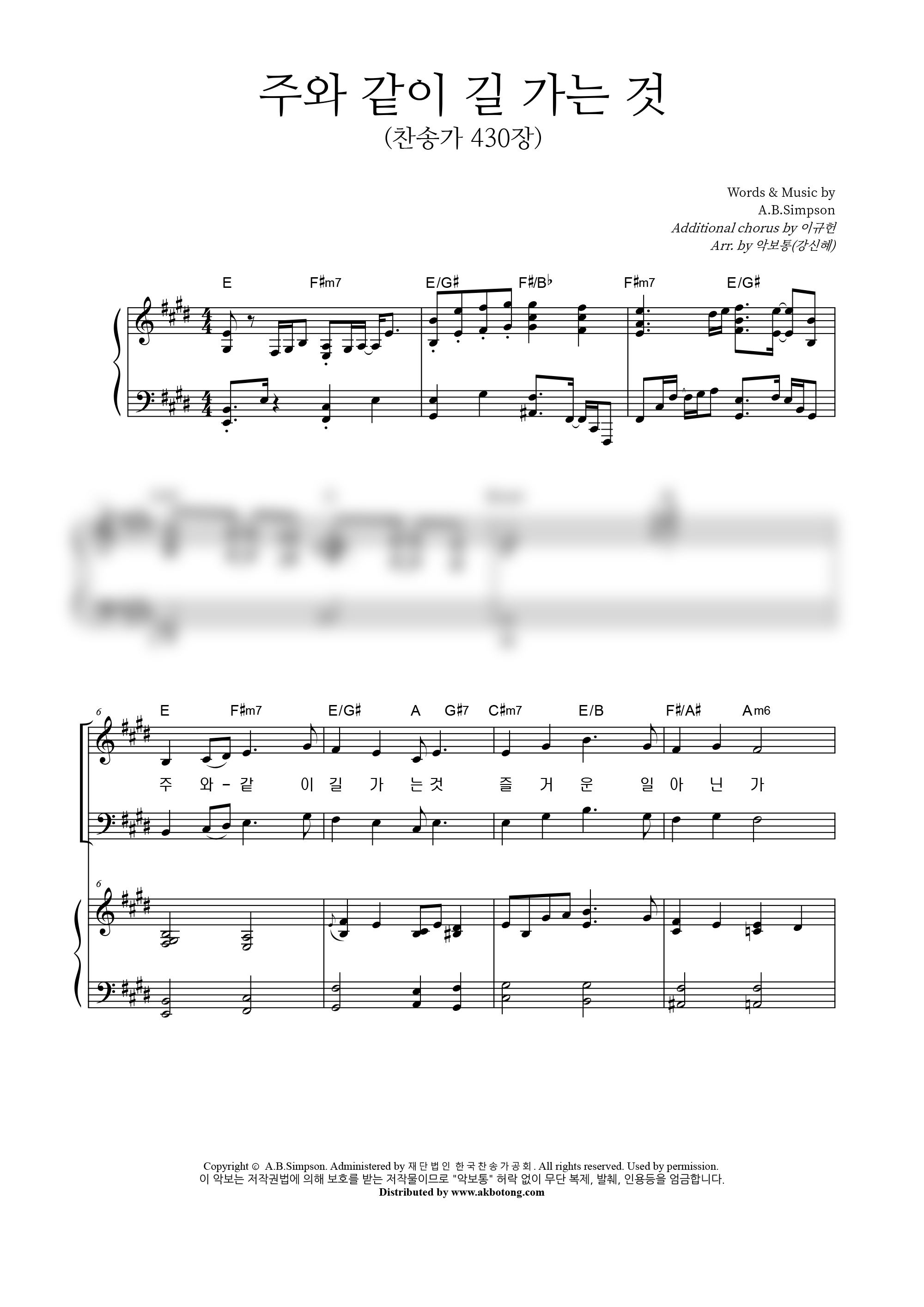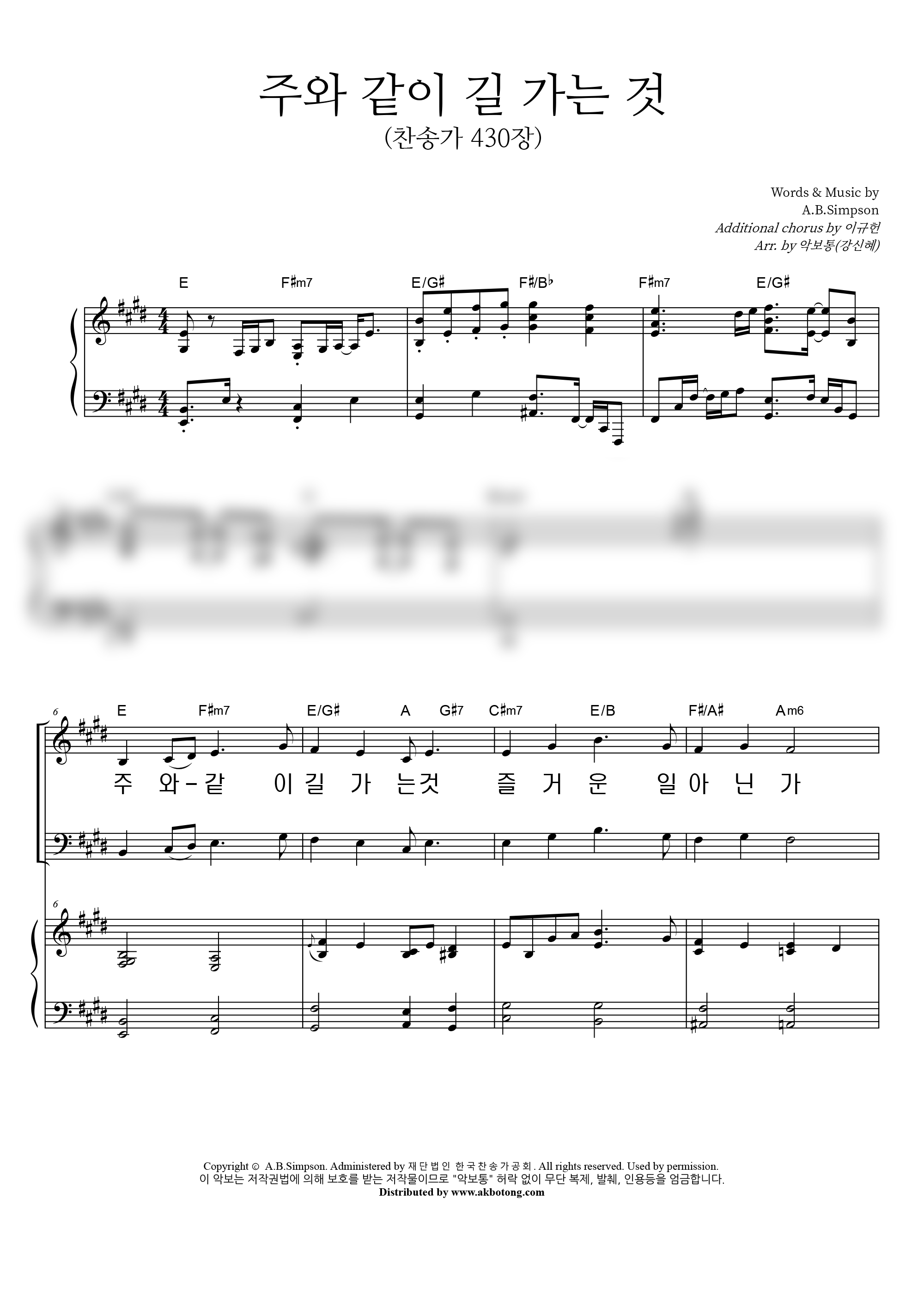 | 주와 같이 길 가는 것 (이규헌 편곡) 큰글씨 | 성가 4부 + 피아노 반주 |
