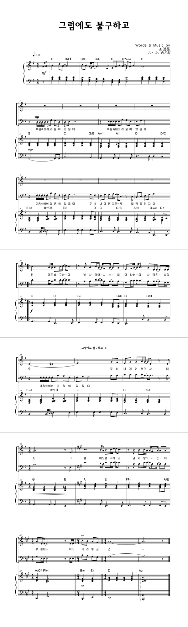 | 그럼에도 불구하고 | 성가 2부 + 피아노 반주 |