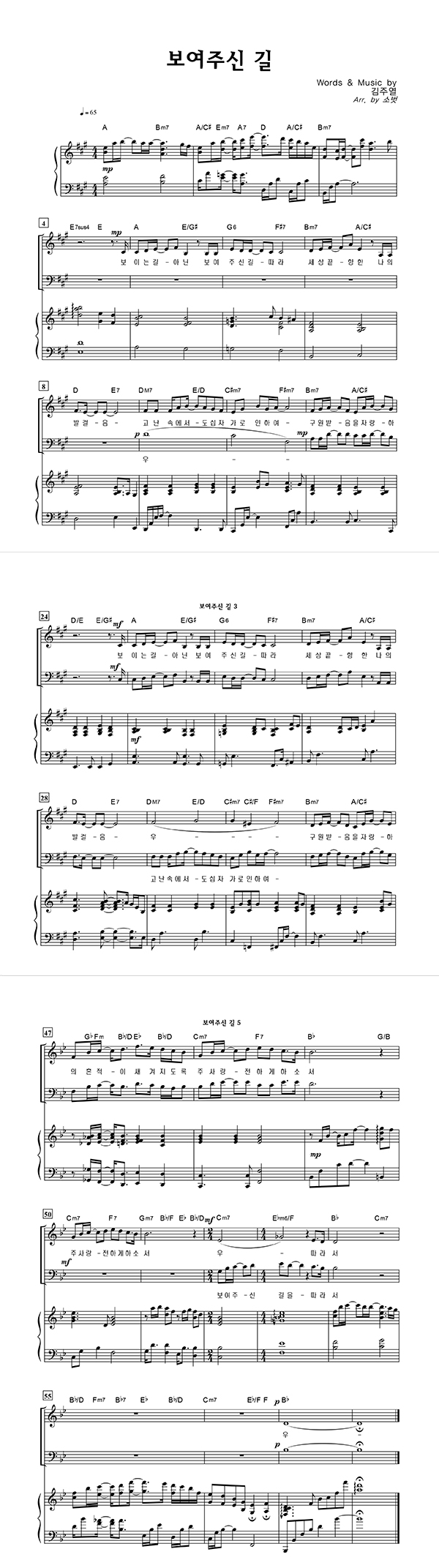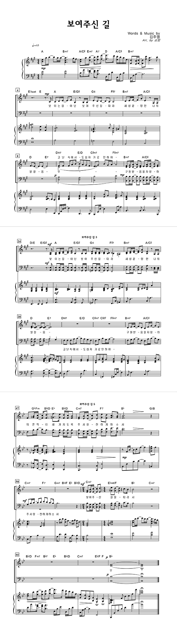 | 보여주신 길 | 성가 4부 + 피아노 반주 |