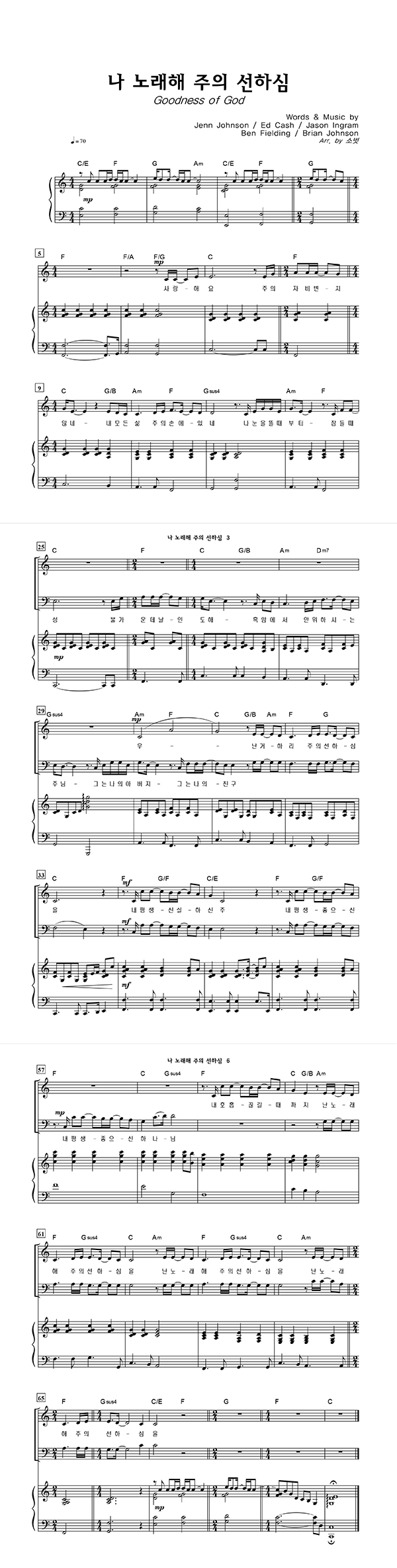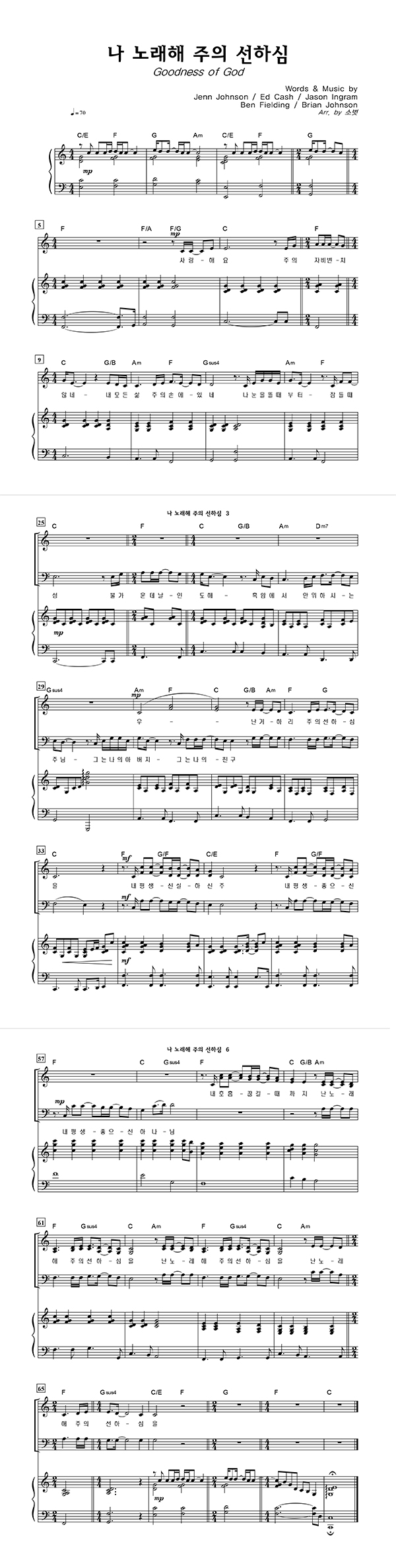 '나 노래해 주의 선하심' 의 다른 악보형식