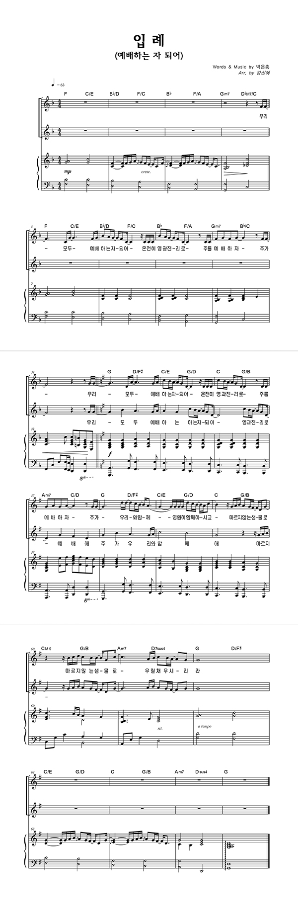 '입례 (예배하는 자 되어)' 의 다른 악보형식