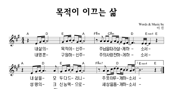 '이천 라이브 워십 - My Purpose' 의 다른 악보