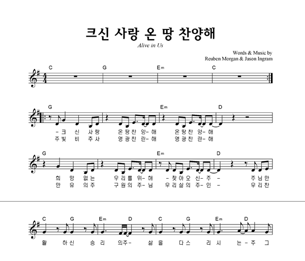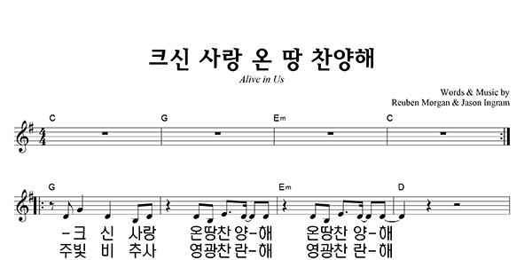 | 크신 사랑 온 땅 찬양해 | 단선 |