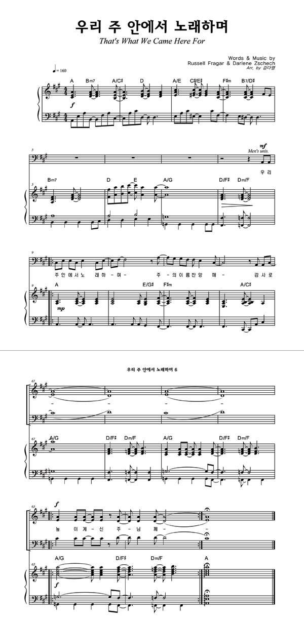 | 우리 주 안에서 노래하며 | 성가 3부 + 피아노 반주 |