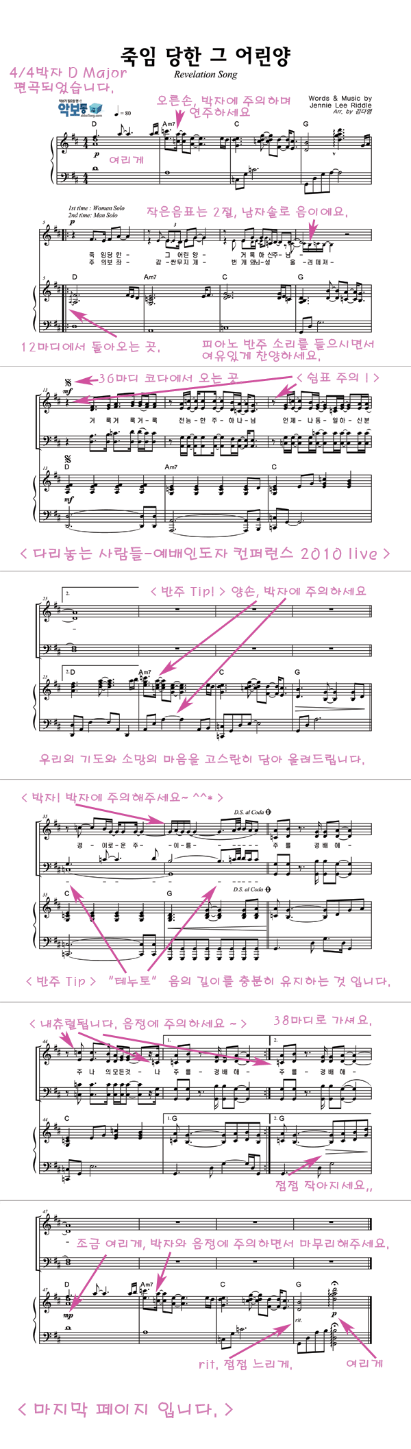 | 죽임 당한 그 어린양 | 성가 2부 + 피아노 반주 |