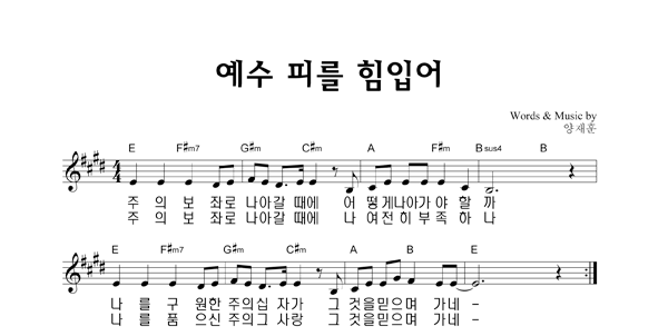 | 예수 피를 힘입어 | 성가 4부 + 피아노 반주 |