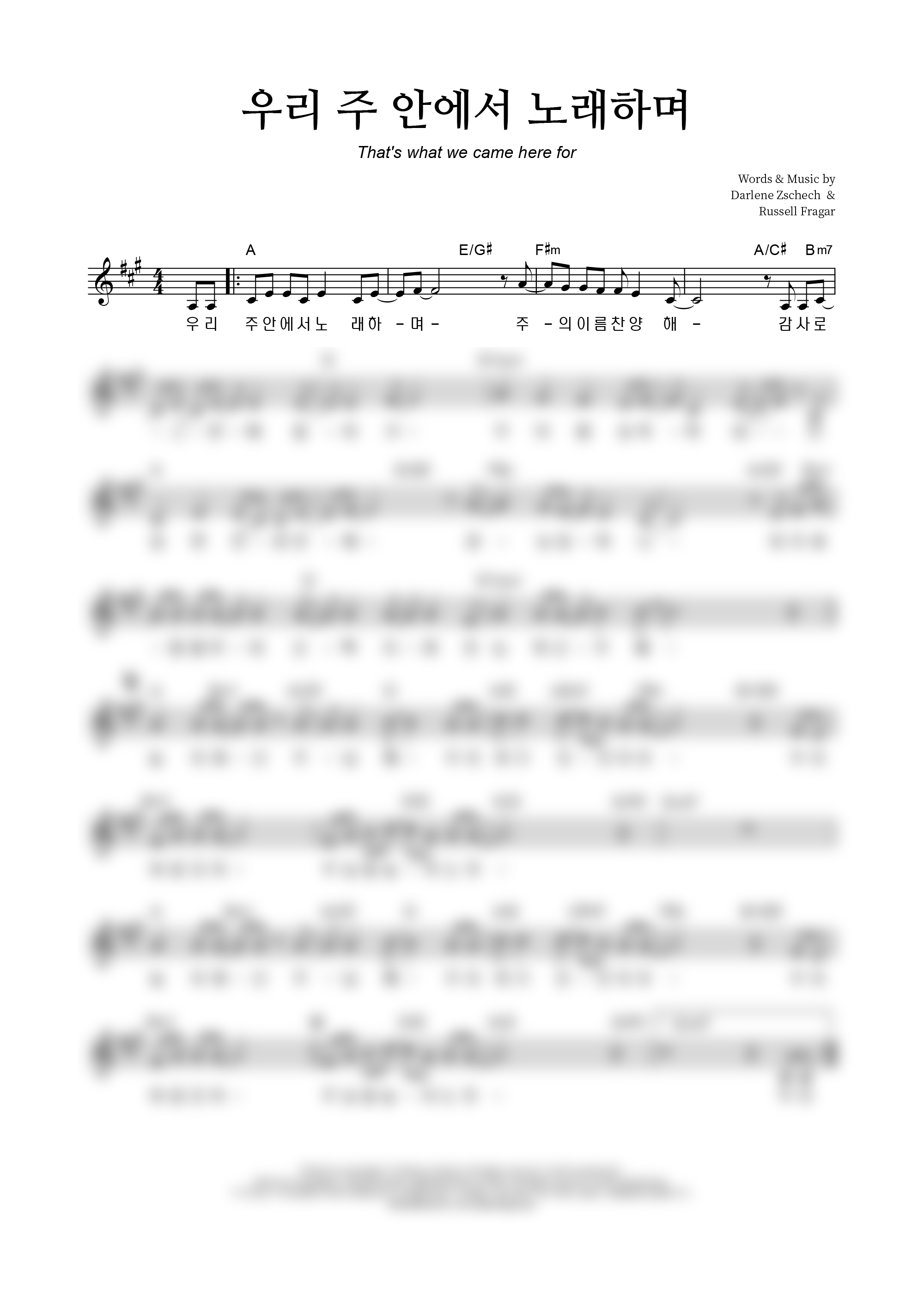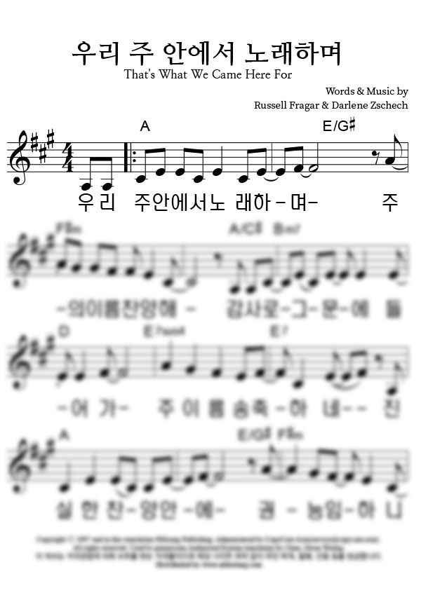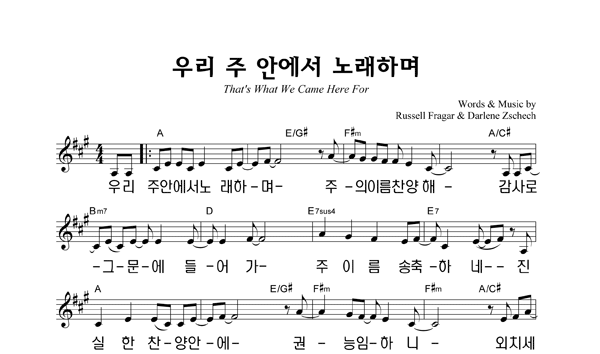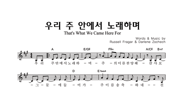 | 우리 주 안에서 노래하며 | 성가 2부 + 피아노 반주 |