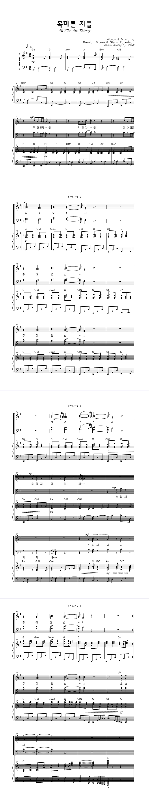 | 목마른 자들 | 성가 2부 + 피아노 반주 |