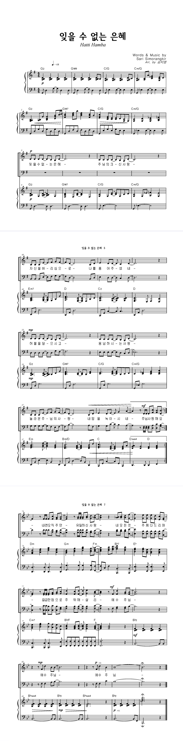 | 잊을 수 없는 은혜 | 성가 4부 + 피아노 반주 |