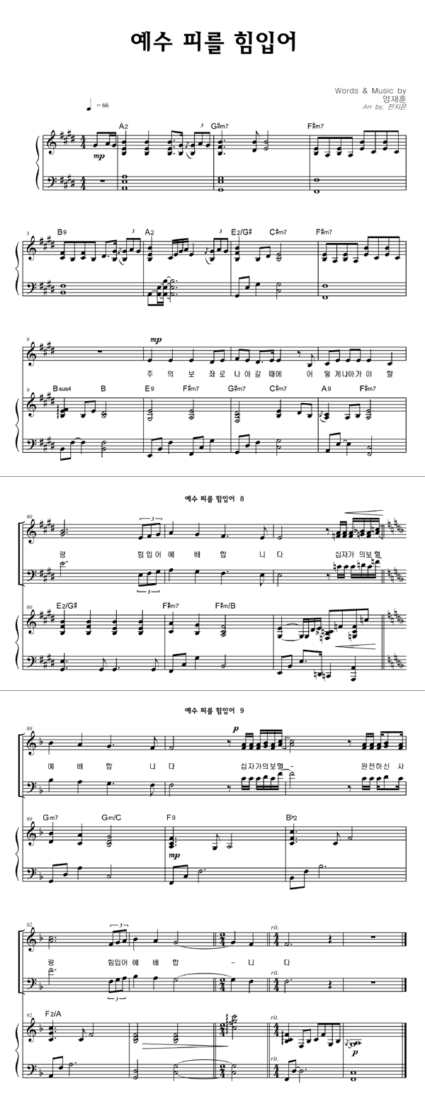| 예수 피를 힘입어 | 성가 3부 + 피아노 반주 |