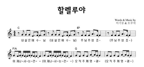 | 할렐루야 큰글씨 | 단선 |