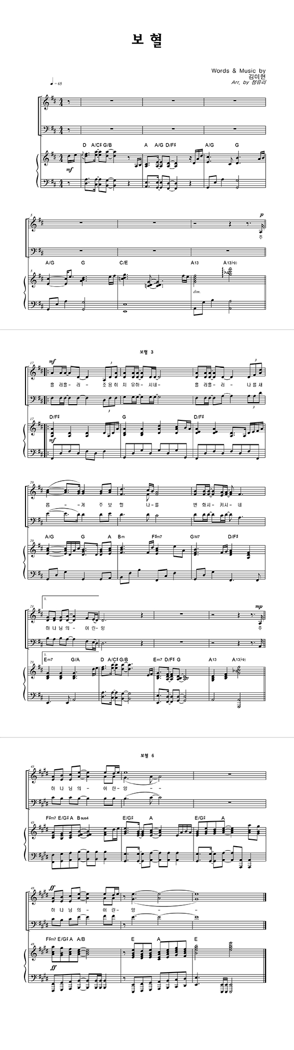 | 보혈 | 성가 3부 + 피아노 반주 |
