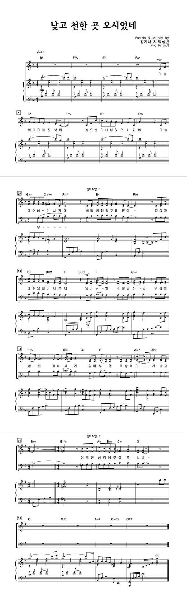 | 낮고 천한 곳 오시었네 | 성가 2부 + 피아노 반주 |