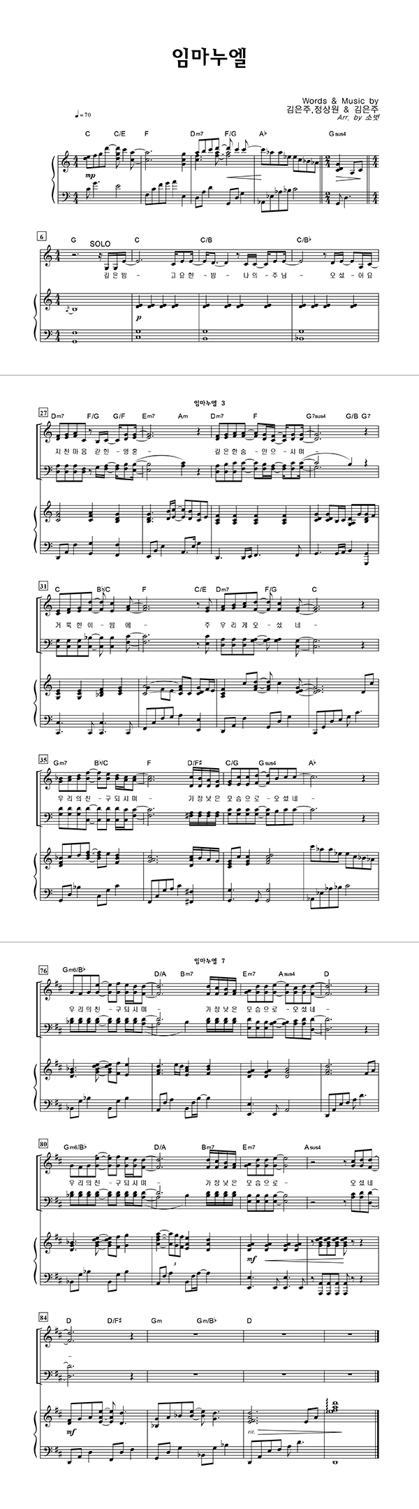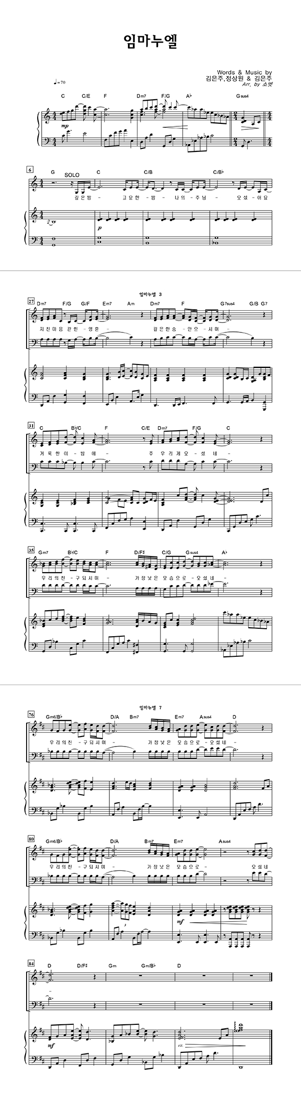 | 임마누엘(PROD. BY 염평안) | 성가 3부 + 피아노 반주 |