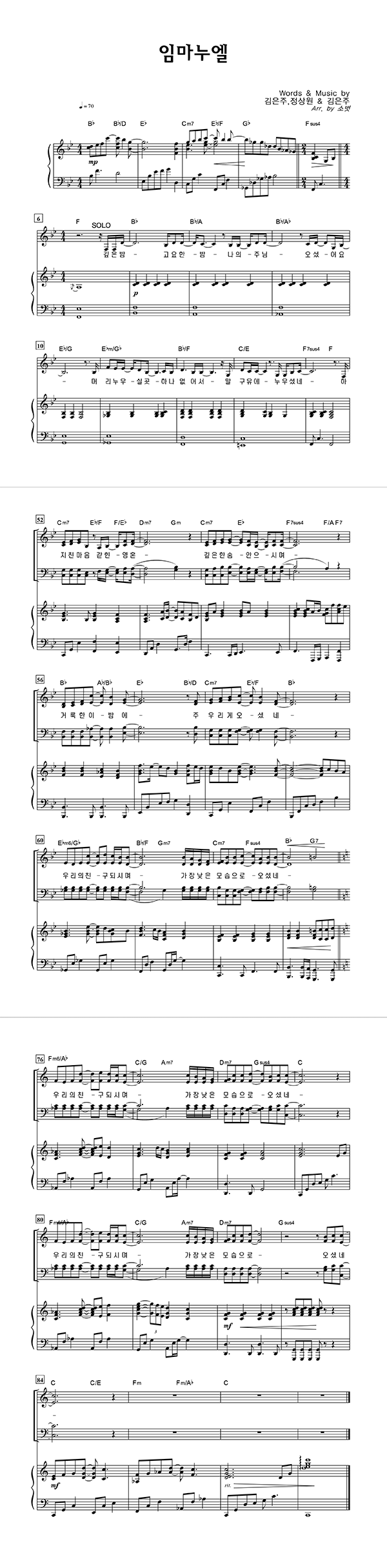 | 임마누엘(PROD. BY 염평안) | 성가 4부 + 피아노 반주 |