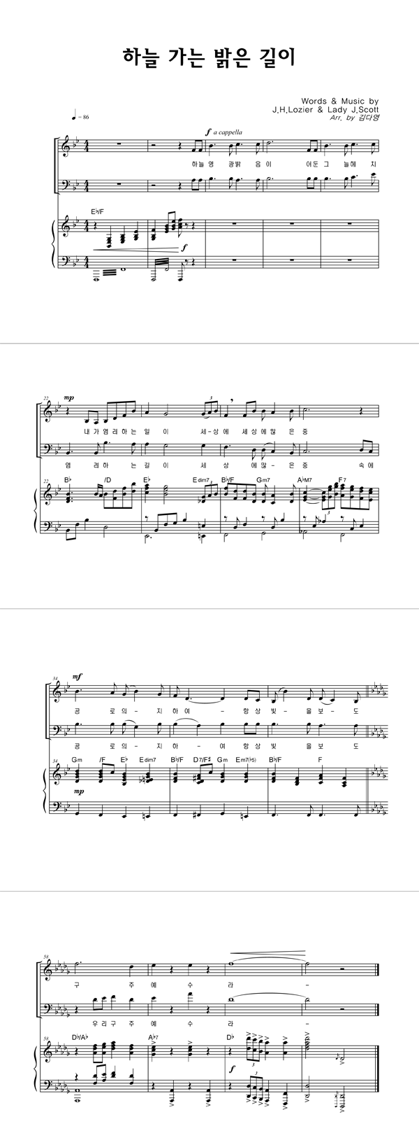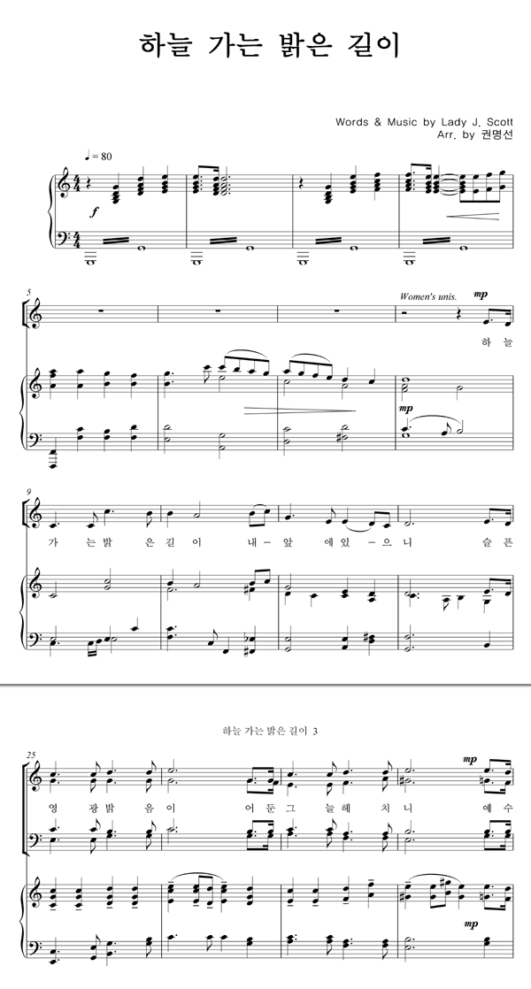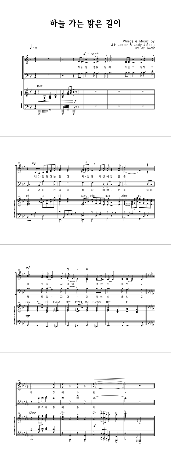 | 하늘 가는 밝은 길이 | 성가 2부 + 피아노 반주 |