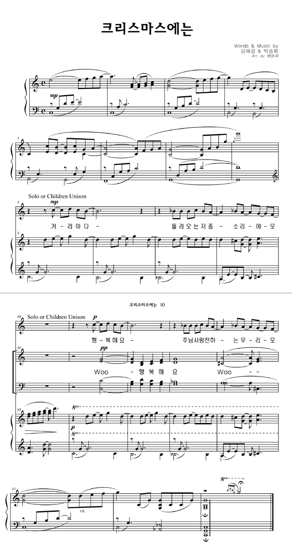 | 크리스마스에는 | 성가 4부 + 피아노 반주 |