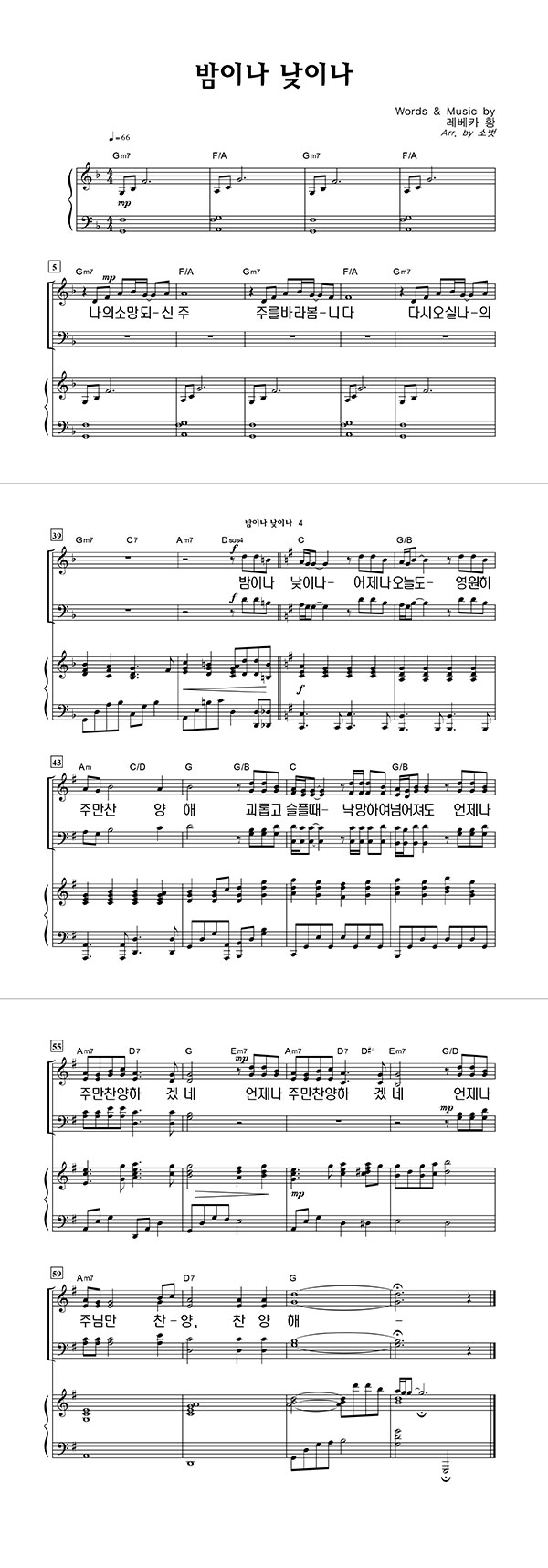 | 밤이나 낮이나 큰글씨 | 성가 4부 + 피아노 반주 |