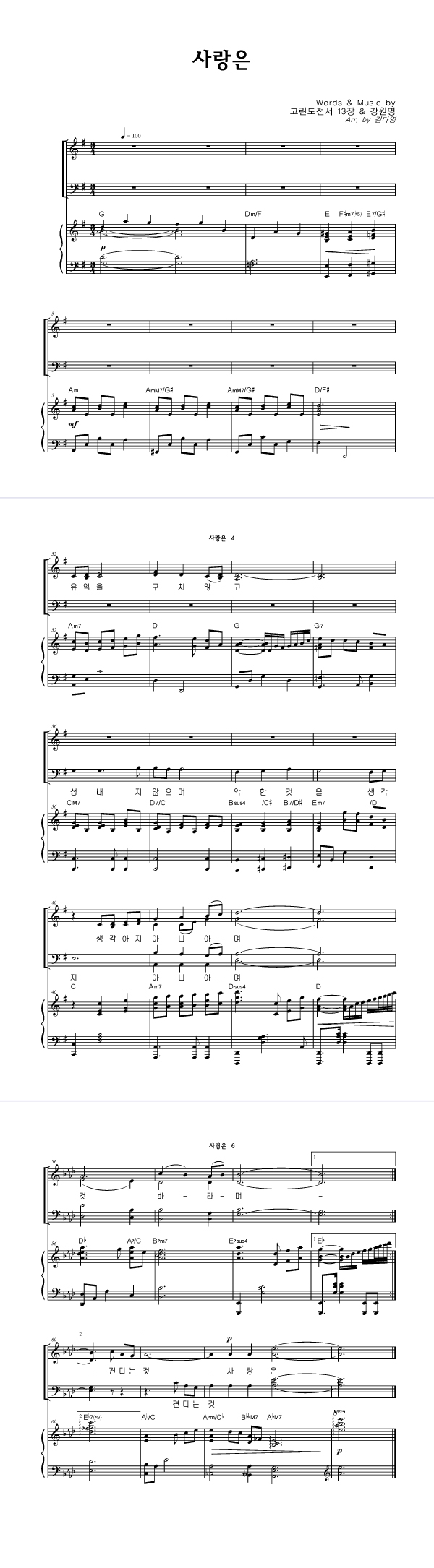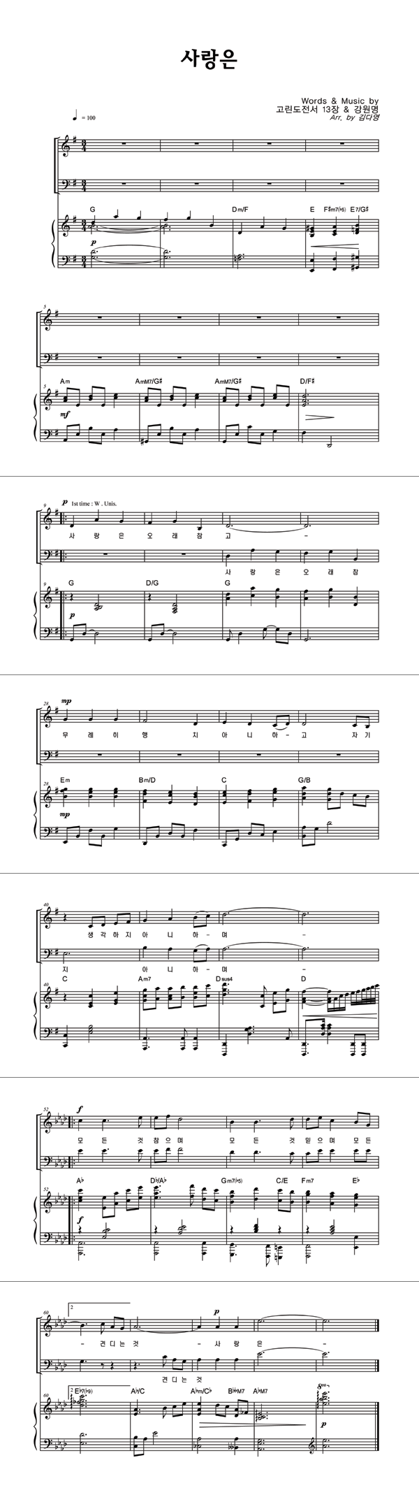 | 사랑은 | 성가 4부 + 피아노 반주 |