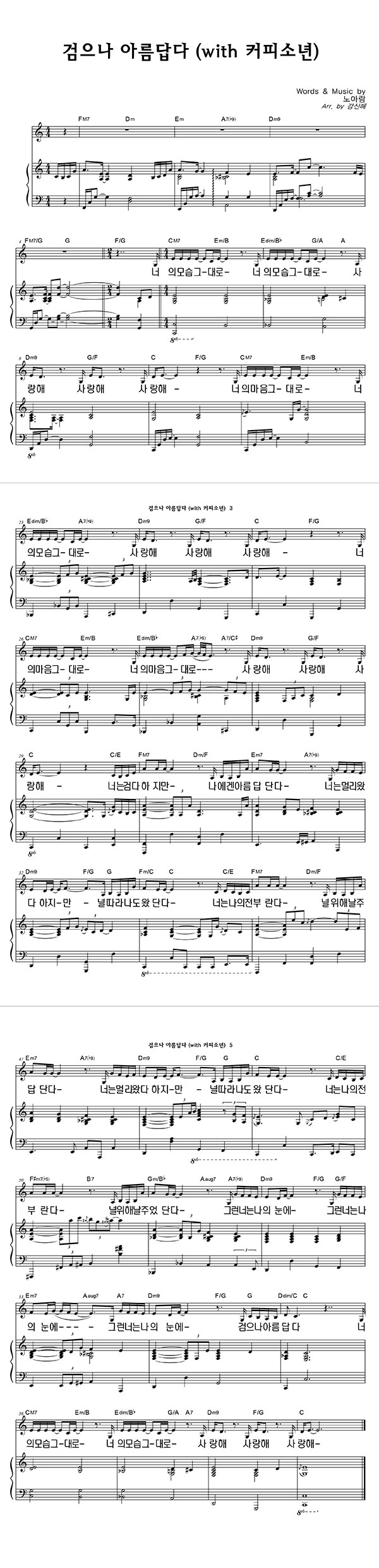 '검으나 아름답다 (With 커피소년)' 의 다른 악보형식
