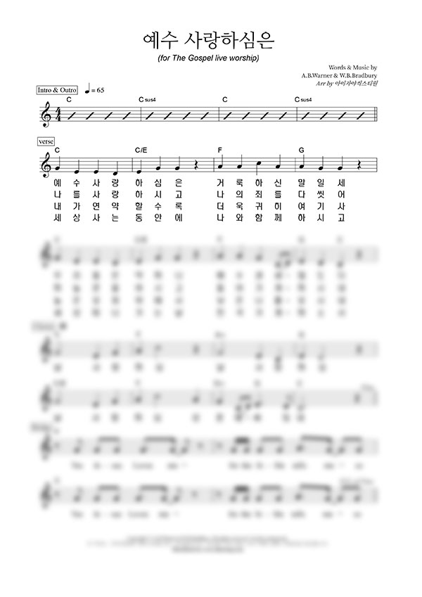 '내 주 되신 주를 참 사랑하고 & 내 주를 가까이' 의 다른 악보형식