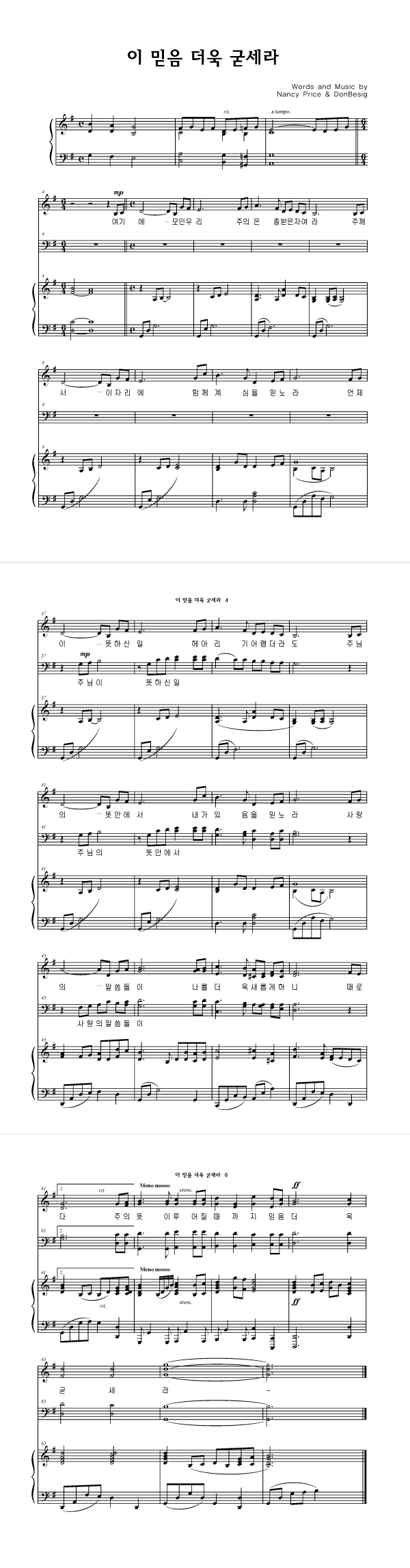 | 이 믿음 더욱 굳세라 | 성가 4부 + 피아노 반주 |