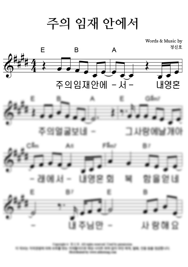 | 주 사랑이 나를 숨쉬게해 | 성가 3부 + 피아노 반주 |