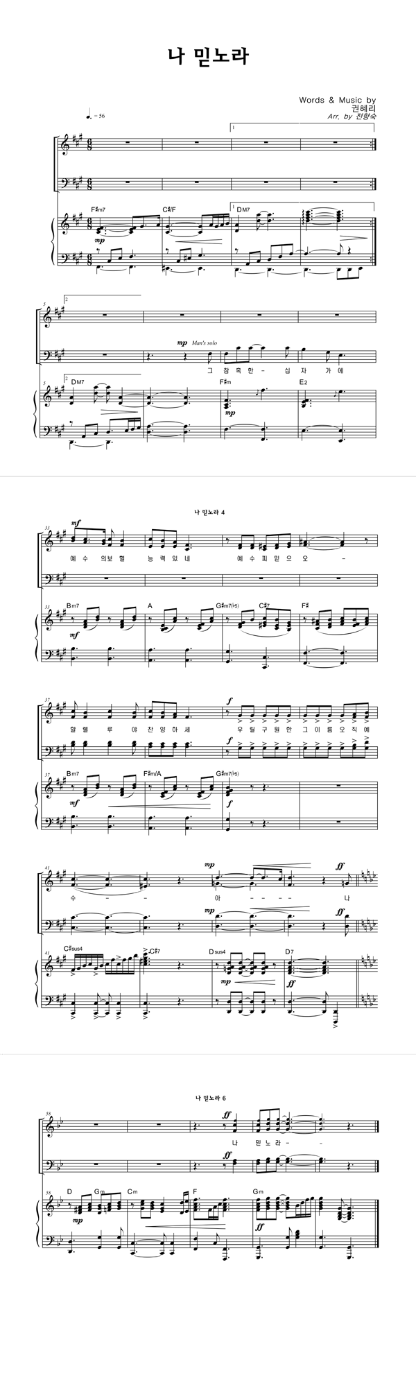| 나 믿노라 | 성가 2부 + 피아노 반주 |