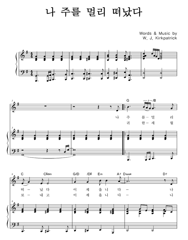 '나 주를 멀리 떠났다' 의 다른 악보형식