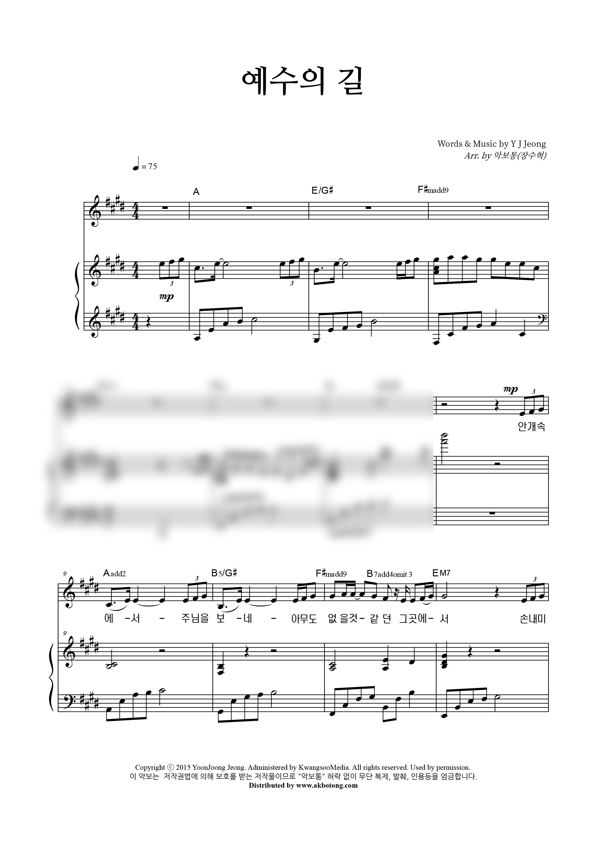| 예수의 길 | 성가 3부 + 피아노 반주 |