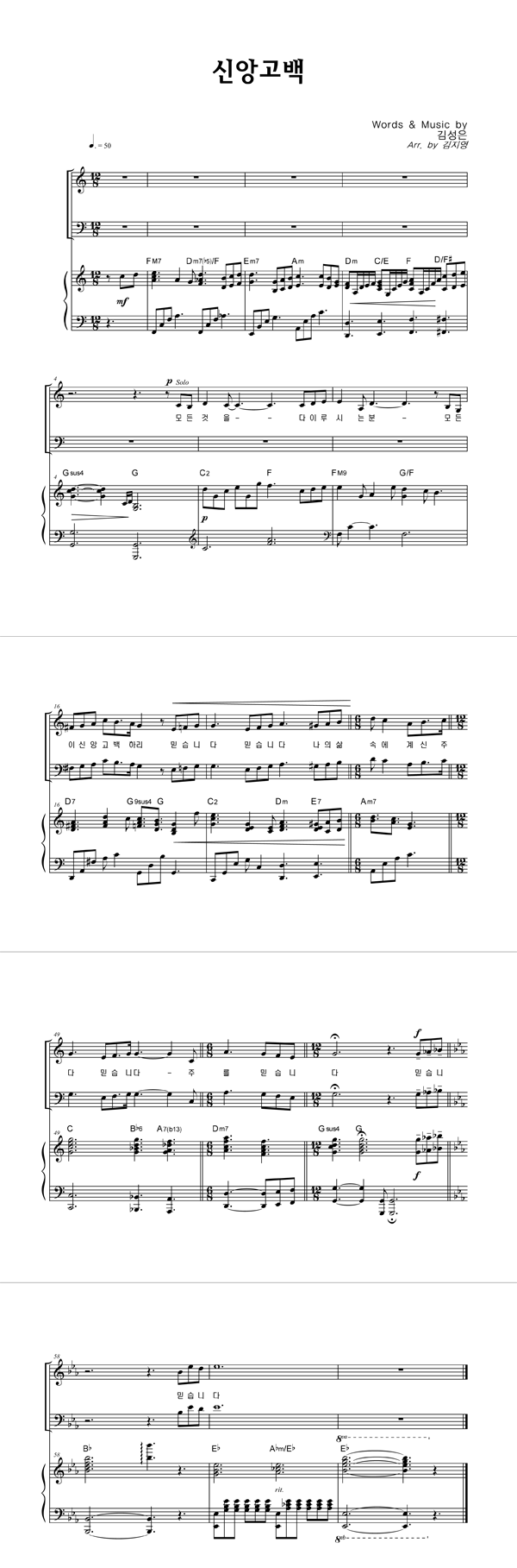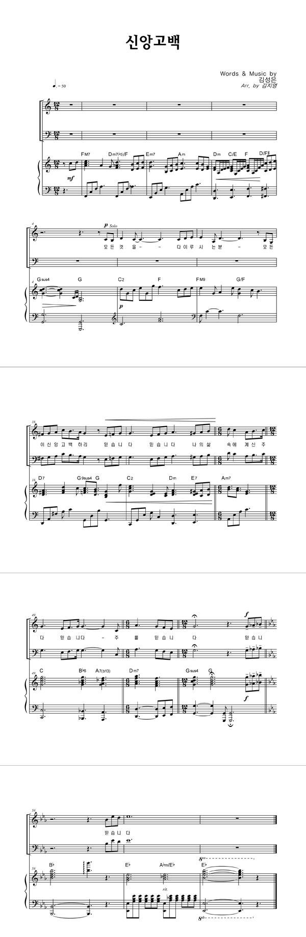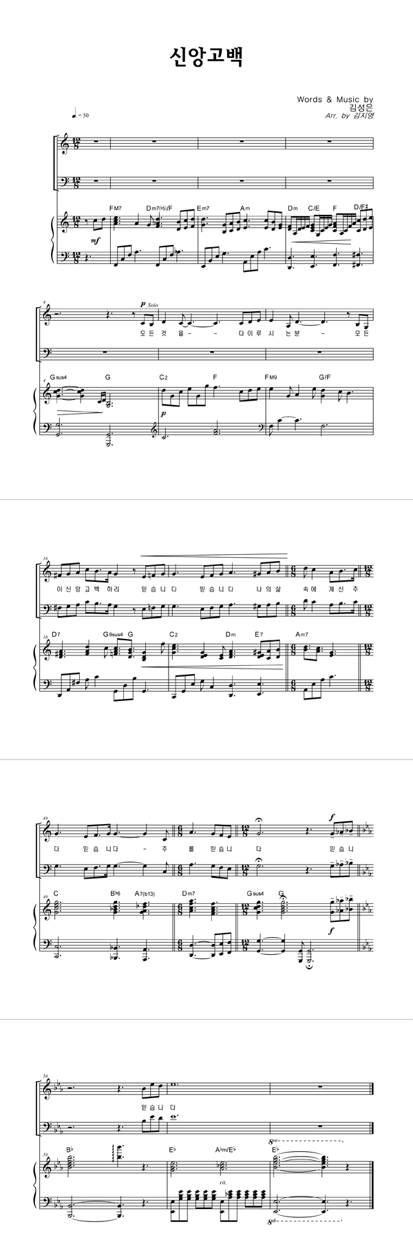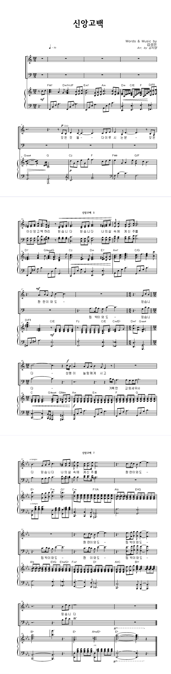 | 신앙고백 | 성가 4부 + 피아노 반주 |