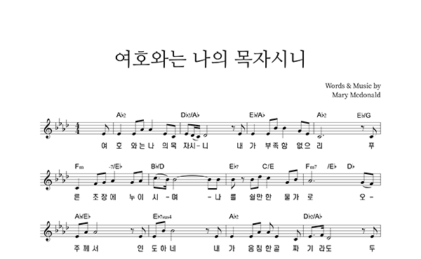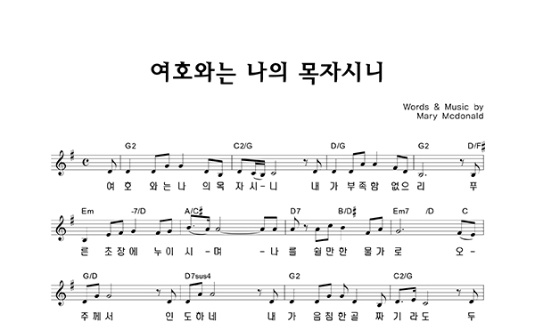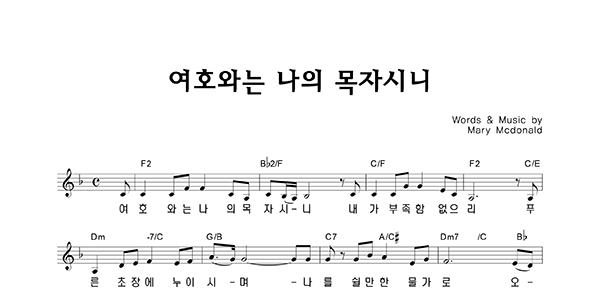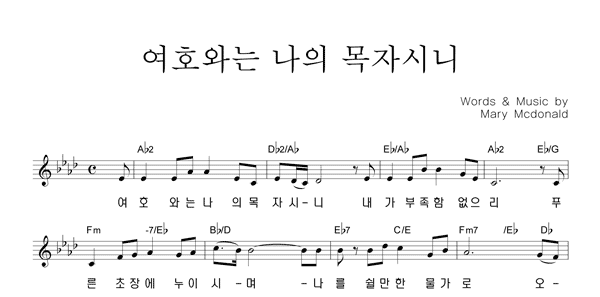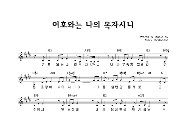 | 여호와는 나의 목자시니 | 성가 2부 + 피아노 반주 |