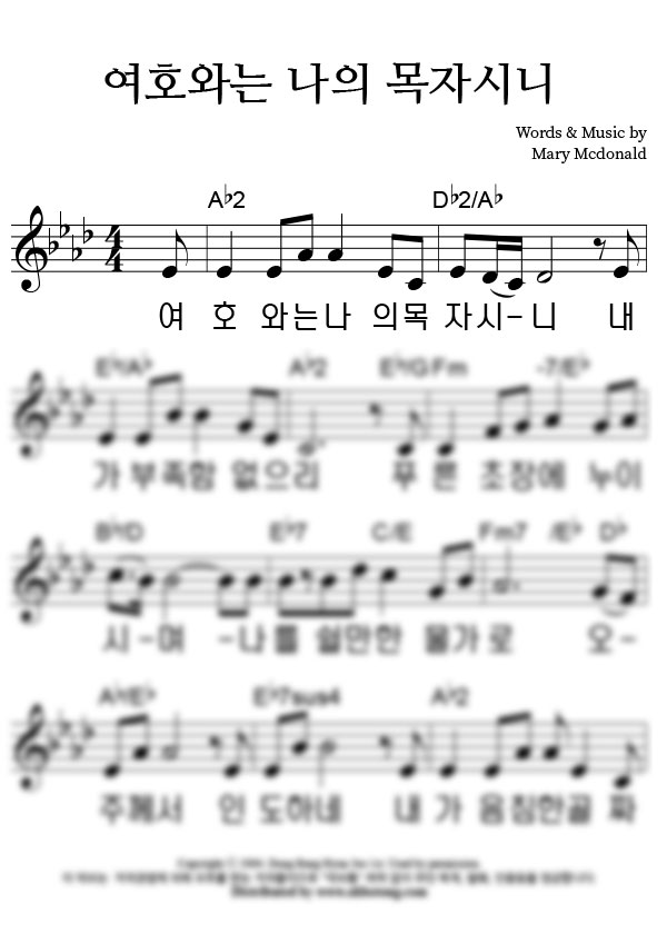 | 여호와는 나의 목자시니 큰글씨 | 성가 4부 + 피아노 반주 |