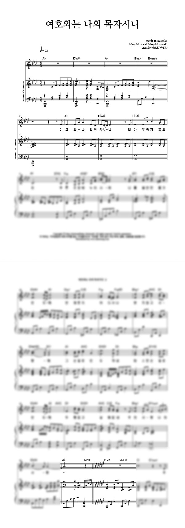 | 여호와는 나의 목자시니 | 성가 3부 + 피아노 반주 |