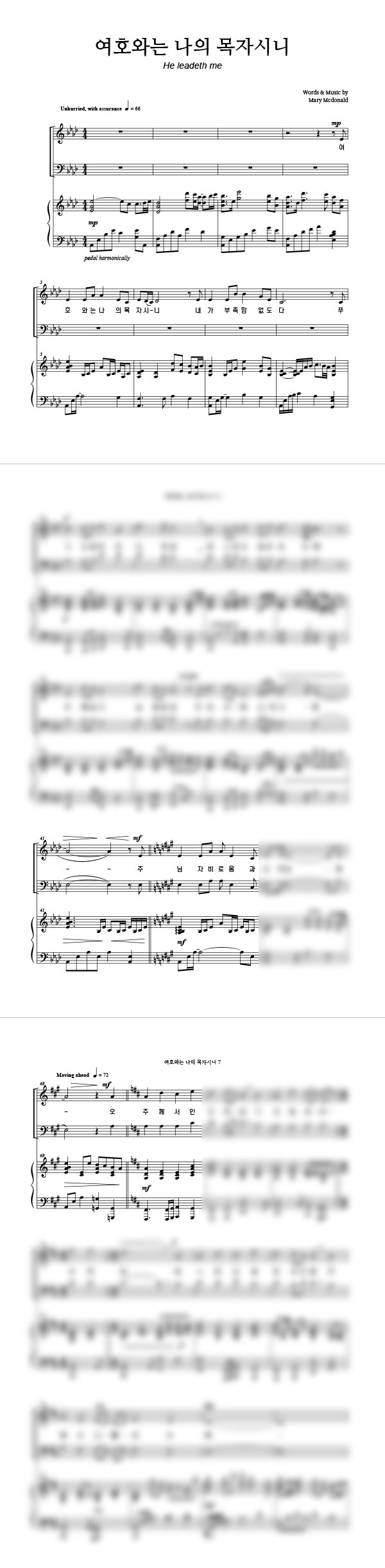 | 여호와는 나의 목자시니 | 성가 4부 + 피아노 반주 |