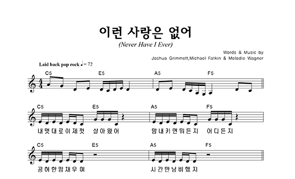'Never Have I Ever 이런 사랑은 없어' 의 다른 악보형식
