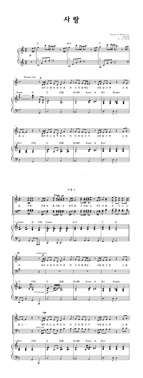 | 사랑 | 성가 3부 + 피아노 반주 |
