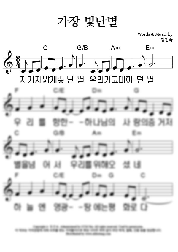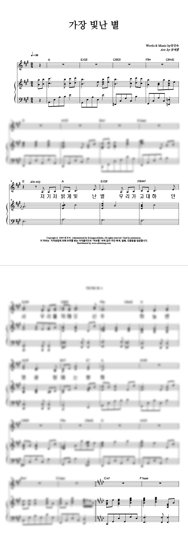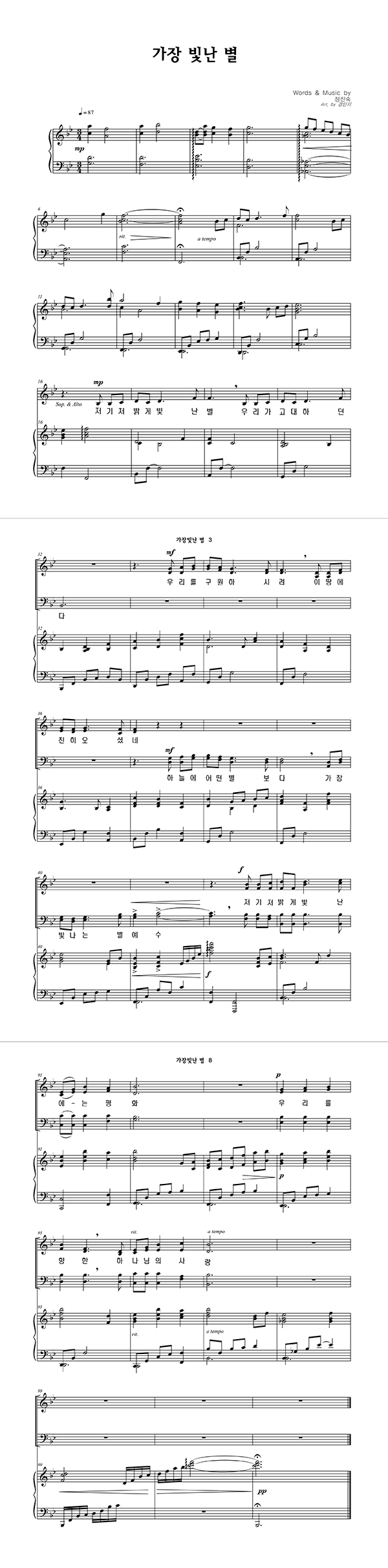 | 가장 빛난 별 | 성가 2부 + 피아노 반주 |