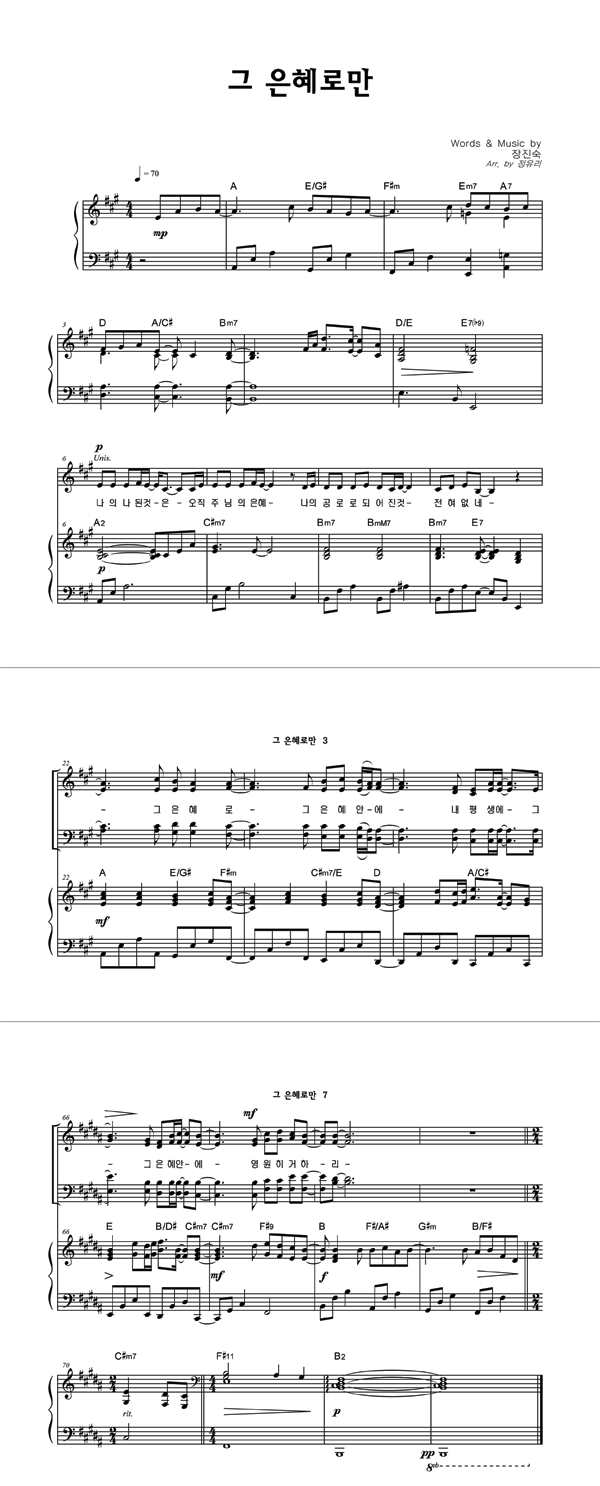 | 그 은혜로만 | 성가 3부 + 피아노 반주 |