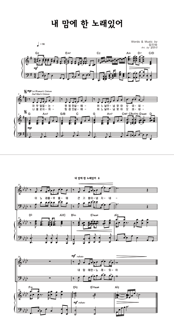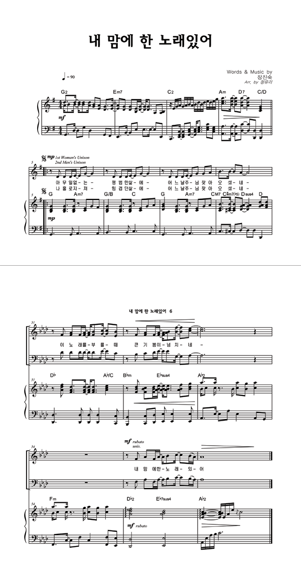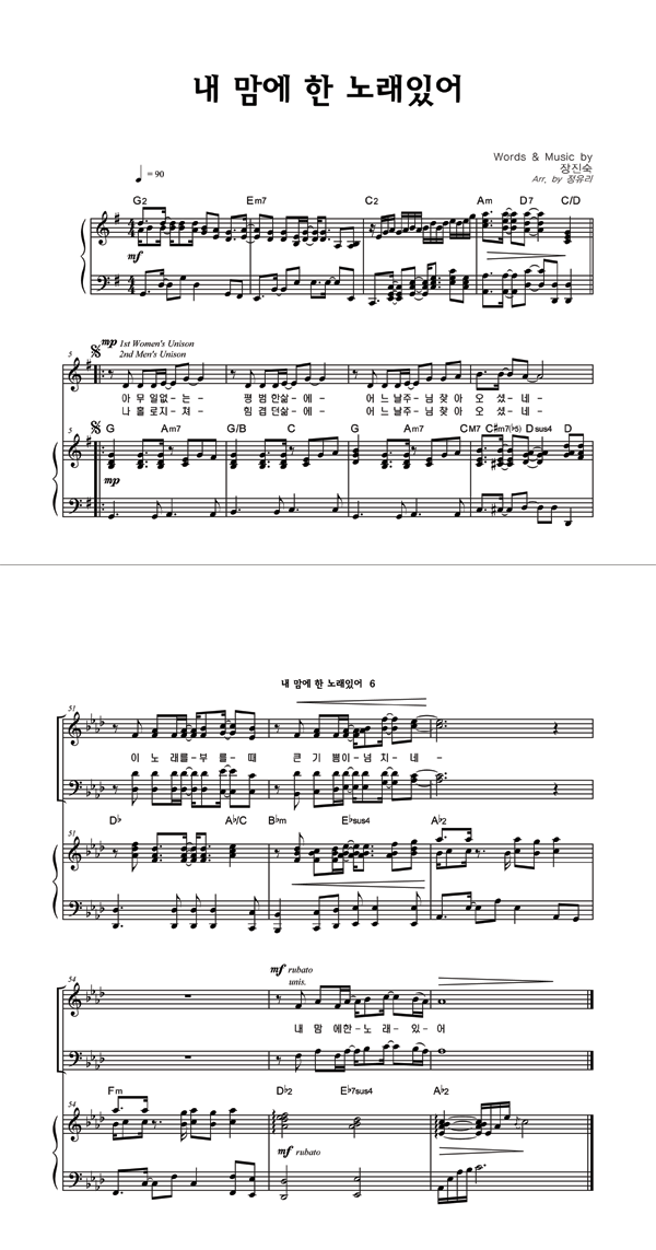 | 내 맘에 한 노래있어 | 성가 2부 + 피아노 반주 |