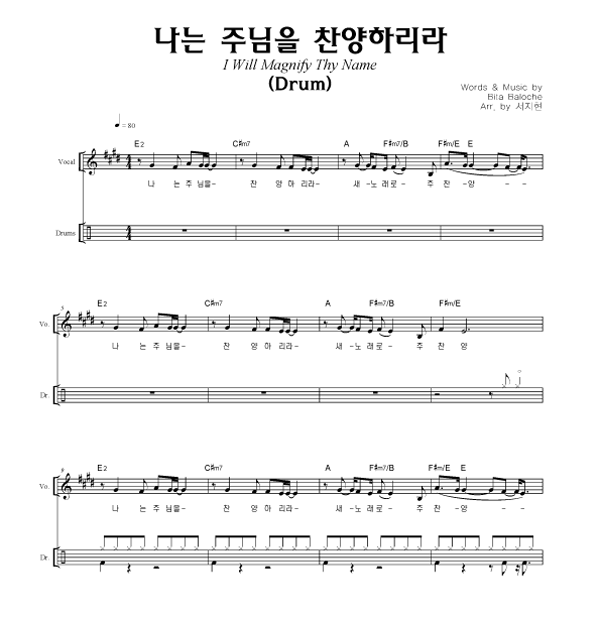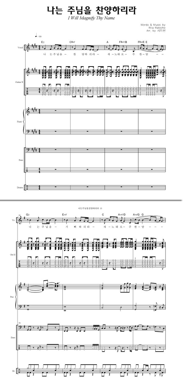 | 나는 주님을 찬양하리라 | 성가 4부 + 피아노 반주 |