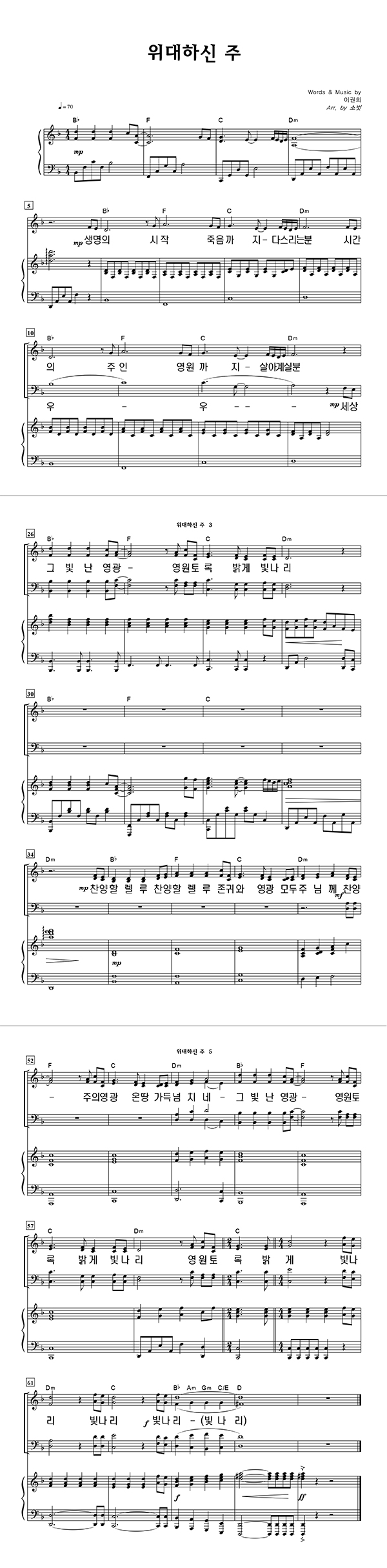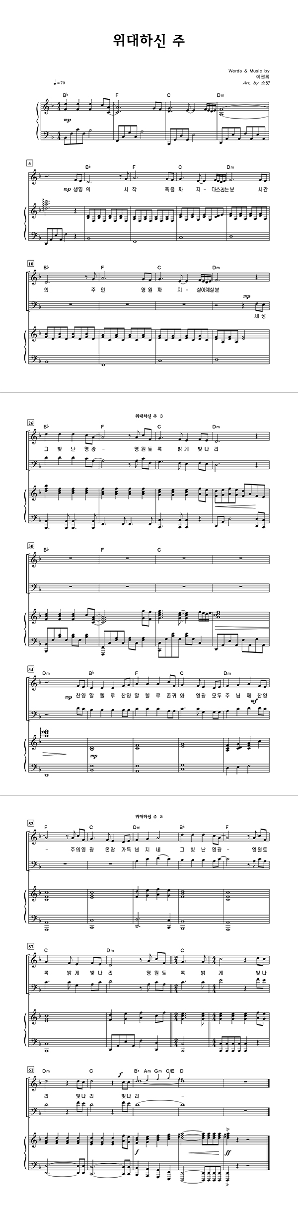 | 위대하신 주 | 성가 3부 + 피아노 반주 |